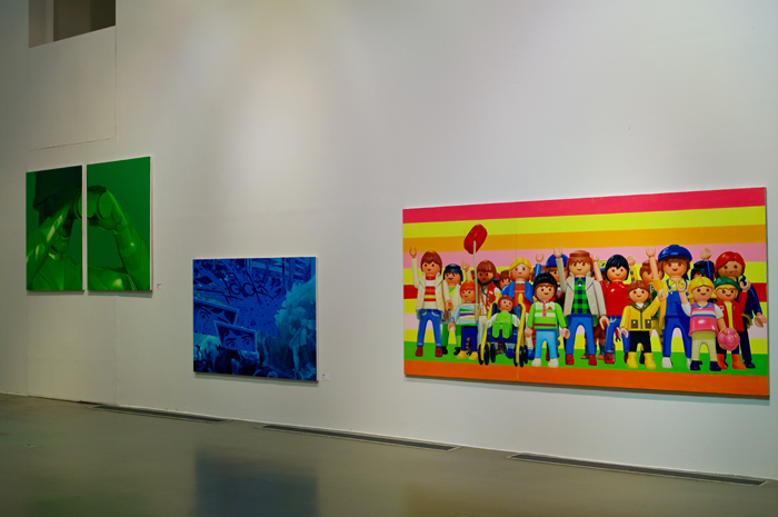 Àü½ÃµÇ¾î ÀÖ´Â ÀÛǰµéµµ ÀÌ·± ÁöÇâÁ¡À» °³³äÈÇÑ °ÍÀ̳ª, üÇèÇÒ ¼ö ÀÖ´Â °ÍµéÀÌ´Ù. ¹ÚÈ¿µ ÀÛ°¡ÀÇ <Å©¶ö¸¯ ÆúÄ«>´Â ¸ÅÀÏ Á¤¿À¸¶´Ù ½Ã¹ÎµéÀÌ ½Ãû ¾Õ ±¤Àå¿¡¼ ÆúÄ«¸¦ Ãß¾î¾ß¸¸ ÇÏ´Â °¡»óÀÇ µµ½Ã 'Å©¶ö¸¯'ÀÇ À̾߱â·Î Çѱ¹»çȸ¸¦ dzÀÚÇÑ ¼³Ä¡ ÀÛǰÀÌ´Ù. ÆúÄ« À½¾ÇÀÌ ¿ï·Á ÆÛÁö´Â °¡¿îµ¥ º®¸é¿¡´Â ³²»êŸ¿ö »çÁøÀÌ ¿µ»çµÇ°í 'Å䳢Ǯ' ¸ð¾çÀÇ ¿ÀºêÁ¦µéÀÌ ÃãÀ» Ãá´Ù. ÀÌ ¿ÀºêÁ¦µéÀº °ü°´ÀÇ ¹Ú¼ö ¼Ò¸®¿¡µµ ¿òÂñ¿òÂñ ¹ÝÀÀÇÔÀ¸·Î½á ¿ì¸® ÀڽŰú ÀÌ µµ½ÃÀÇ ¿¬°ü±îÁö »ó±â½ÃŲ´Ù.